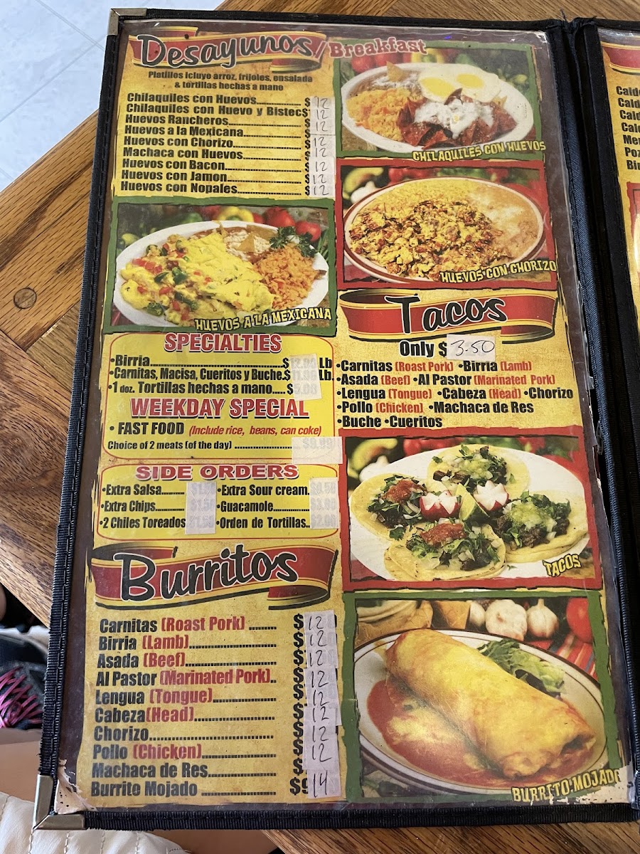 For taco lovers, the Tacos De Carnitas is a must-try. These soft corn tortillas are filled with juicy, slow-cooked pork carnitas, offering a burst of flavors in every bite. Alternatively, the Aguachiles-Birria De Res provides an exciting mix of spicy and tangy flavors with its tender beef birria, served with a zesty chili-based broth that perfectly balances heat and richness.